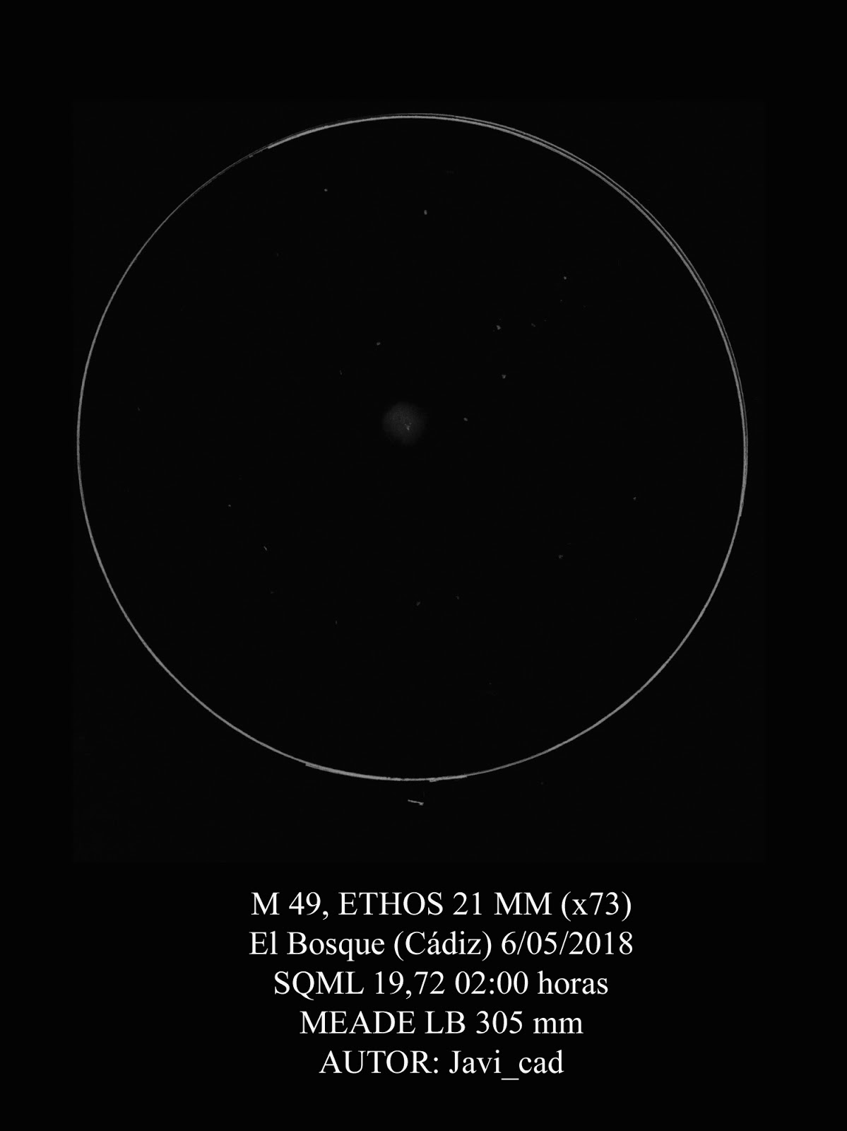 Paso a observar algunas galaxias de Virgo, empiezo con M 49 con el Ethos 21(x73), al principio intuyo otra galaxia por los alrededores que no logro identificar, con el ethos 13 mm le veo más detalles (x117), al final decido hacerle un dibujo con el Ethos 21, pero al intentar hacerlo me pasa un problema que me gustaría comentar.