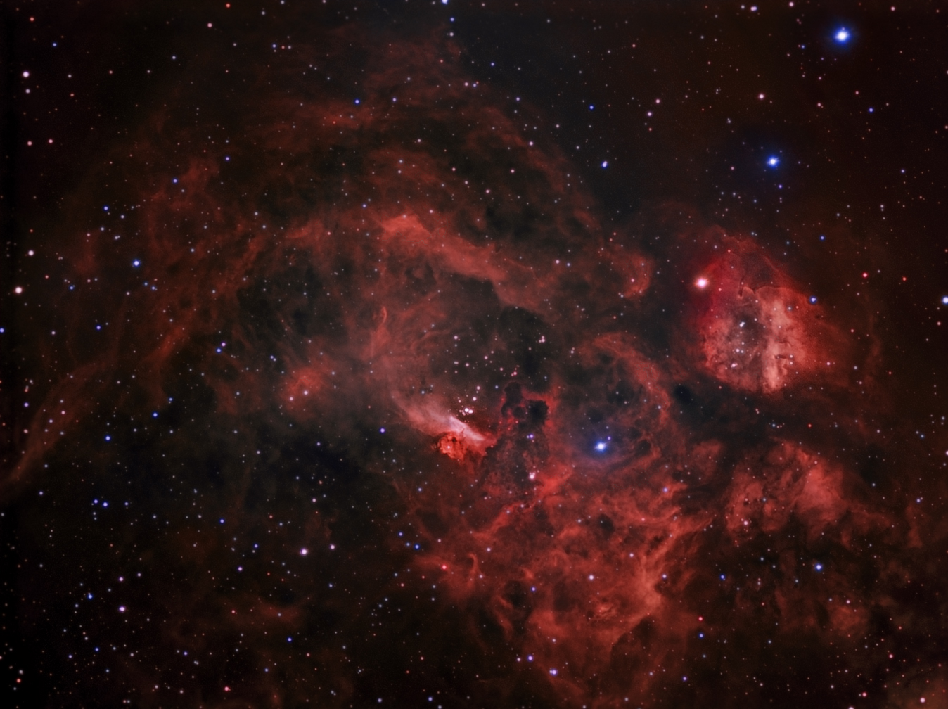 Exposicion: Sub.de 3 min. Integracion Total 3 horas para Ha , sub. de 3 min. Integracion total 1hora 45 min. para OIII, sub. de 3 min. Integracion total 1hora 45 min. para SII